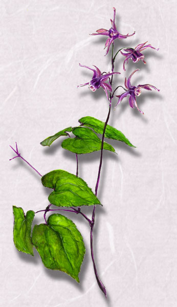 イカリソウは遠い昔、中国の四川省の北部で羊飼いによって薬用効果が発見されたと伝承されています。 第二次世界大戦後しばらくした頃、中国大陸から復員して来た元軍医さんが隣組の青年団の若者達を集めた会合の話の中で、「これから日本を復興させるには、力強い若者が必要である。失われた同胞に報いるには再建した町を早く見せることである。それには活力のある働き手を増員しなくてはならない。したがって、世の男性諸君の奮起が非常に望まれる。そこで外地での耳寄りな話を伝える。」と言って、淫羊カクの説話をしました。それは、私が中学1年の夏休みの時だったように思います。隣の家の座敷が会場で、その隅のタンスの陰で小さくなって、同級生二人と身体を硬直させて聞き入りました。 昔から、中国の四川省北部では羊が沢山放牧され、そこの雄羊は1日に百回も交尾すると言われていました。その精力の源は何なのかと調べたところ、その地方にはカク(ホザキノイカリソウ)という草が沢山生えていて、そのカクを羊が好んで食べることで精力絶倫になっていた言います。このような事柄から、精力絶倫の雄羊を「淫羊」と呼び、薬草の「カク」を合わせてホザキノイカリソウの漢名(生薬名)を「淫羊カク」と名付けたと、李時珍の本草綱目に記されています。 元軍医さんの話は、今で言うエッチ話的話術でした。先輩達は目の玉をギラギラさせながらもお腹を抱えて大声で笑って聞き入っていました。 最後に「桐生地方にも裏山に行けば沢山自生しているので、採取して、諸君等もせっせと喰うが良い。もしこの薬草を知らなくば、明日取りに連れて行くから来い。」と言いました。 時も流れて60歳を通過した先日、異業種会の年1回の会食の席で、これまた元軍隊で薬事関係が任務だった、現在薬局を営んでいる先生を講師に招いた講演で「淫羊カク」が講話されました。補精薬としての薬理効果が今日科学的に解明されたといいます。日本産の「イカリソウ」の葉茎から取り出した物質を動物実験した結果、これを与えた雄動物の精液が増量することがはっきりと科学的に裏付けられたといいます。近年、東洋医学が再認識され、西洋医学や近代科学の粋を結集した研究で、数々の新しい事柄が解明され、私達を長寿の楽園に導いてくれる昨今です。 この新しい情報、成果を十分に満喫されるのもいかがなものでしょうか。 陽光の射す潤った林内の草々の合間にイカリソウは、ハート形の葉を重ね合わせながら風に揺らぎ、あたかも私達を自然の世界へと招いているかのように生じています。 イカリソウは根強く、生育の旺盛な薬用植物です。 |